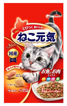 価格: 389円 レビュー評価:0.0 レビュー数:0 名 称 ユニ・チャーム ペットケア ねこ元気 おいしさバランス 【お魚とお肉ミックス 野菜・白身魚入り】 内容量 1kg(小分パック 4袋入) 特 徴 ★新しい形でおいしさアップ ◆猫がだいすきなうまみを増量 さらにおいしくなりました ◆おいしさとバランスを考えた 全成長段階用総合栄養食 ◎丈夫な骨や歯のために、100g中に煮干し約90尾分のカルシウム (5cm大の煮干し換算) ◎ねこの健康に必須成分であるタウリン配合 ◎出来立てのおいしさと風味を逃がさない、小分パック4袋入り ■粒の形が変わりました。 食べやすい、丸と四角の小粒タイプ。 ねこが大好きなまぐろ味、お肉味、野菜味、白身魚味のミックス ※旨み成分が粒表面に固まって付着し、シミのように見える場合がありますが、品質には問題ありません。 ■カロリー 約350kcal ※100gあたり 【全成長段階 (更新日時:2019/04/05 19:13) Supported by 楽天ウェブサービス |